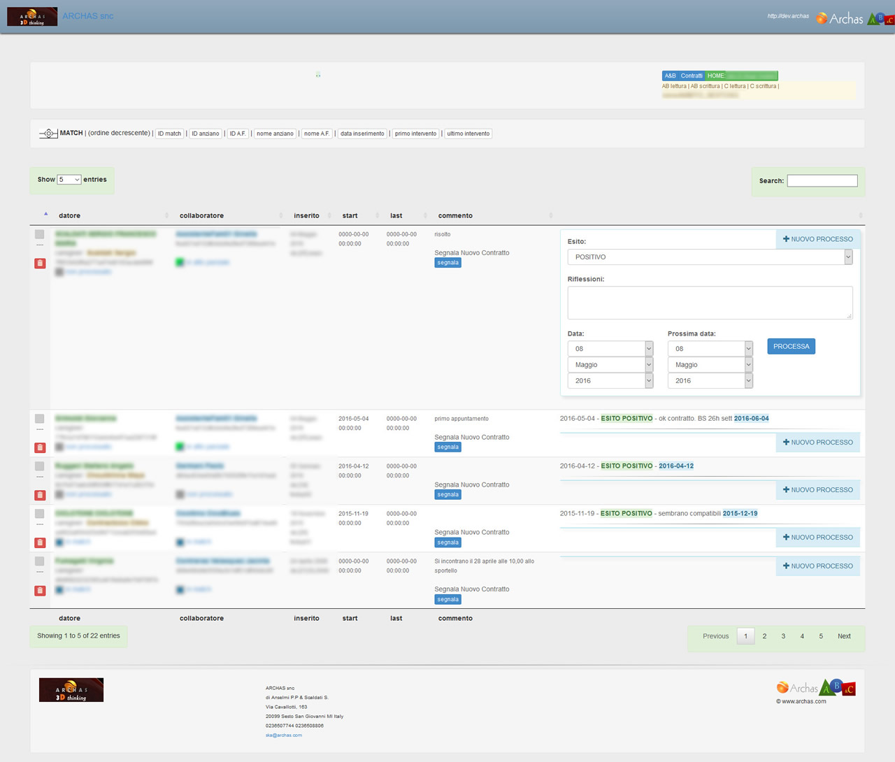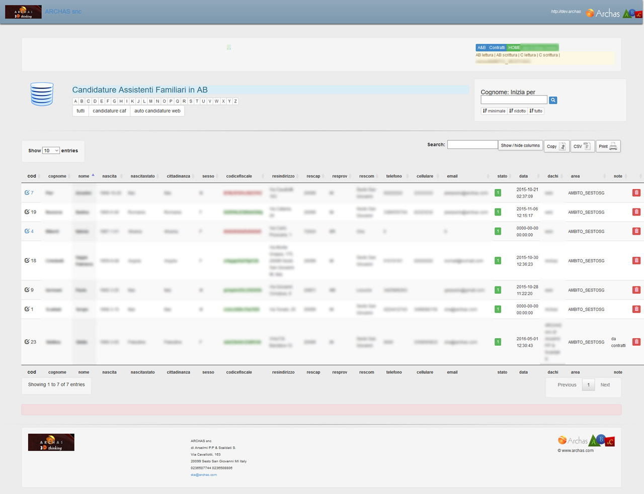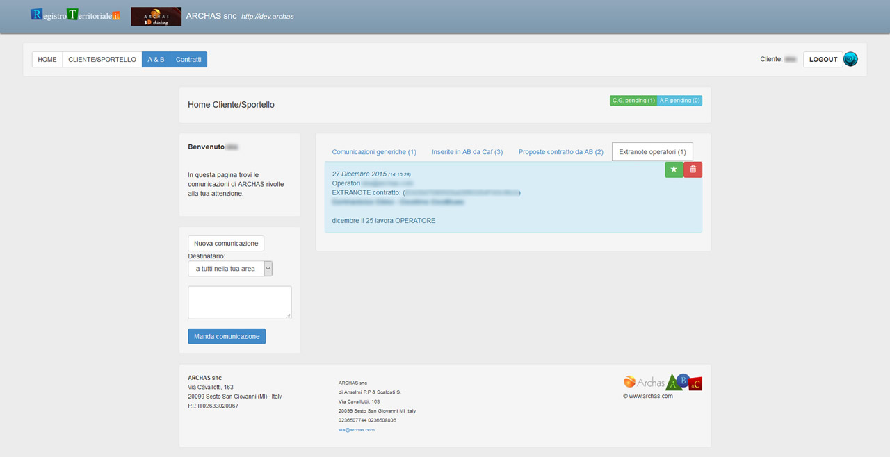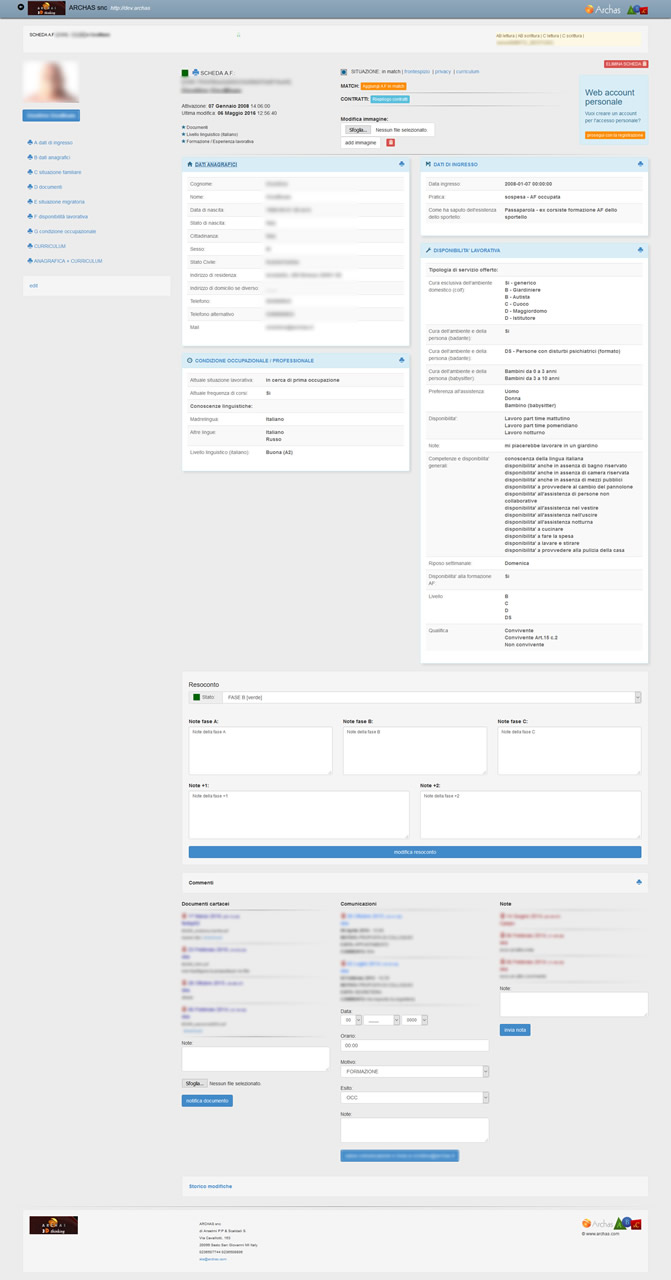 Il nuovo sistema, mettendo in connessione Sportello e “servizio contratti” permette di far confluire nuove candidature allo Sportello Assistenza Familiare e di aggiornare le informazioni degli assistenti già iscritti.