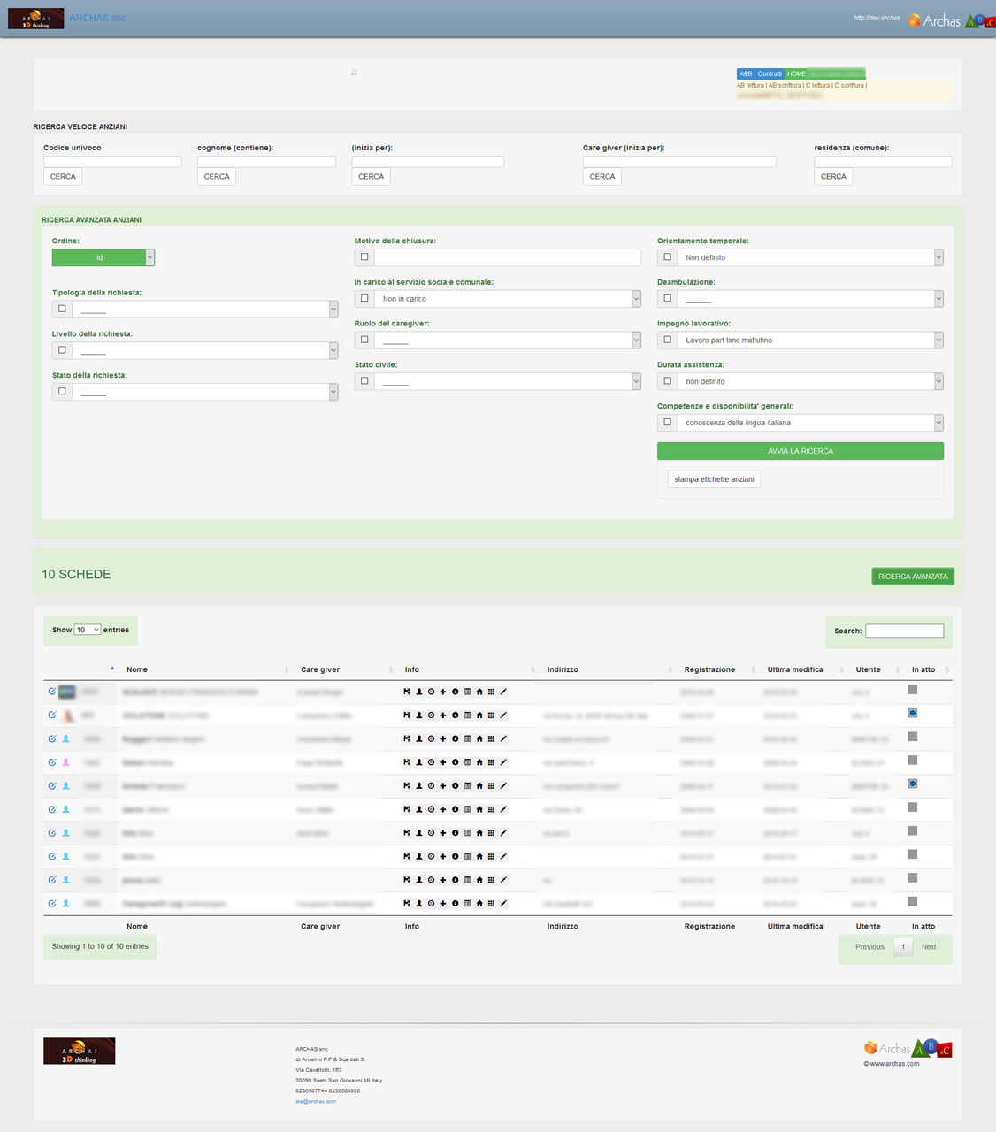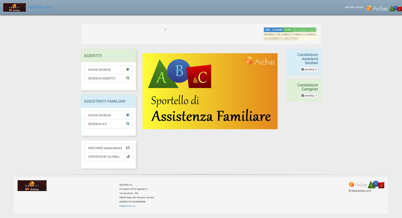 E’ in sviluppo anche lo strumento AB&SAD che consentirà la gestione, da parte dei Servizi Sociali del Comune in condivisione con lo Sportello Assistenza Familiare, dei contratti di assistenza attraverso SAD accreditati o in appalto su un unico DataBase Anziani/Caregiver.