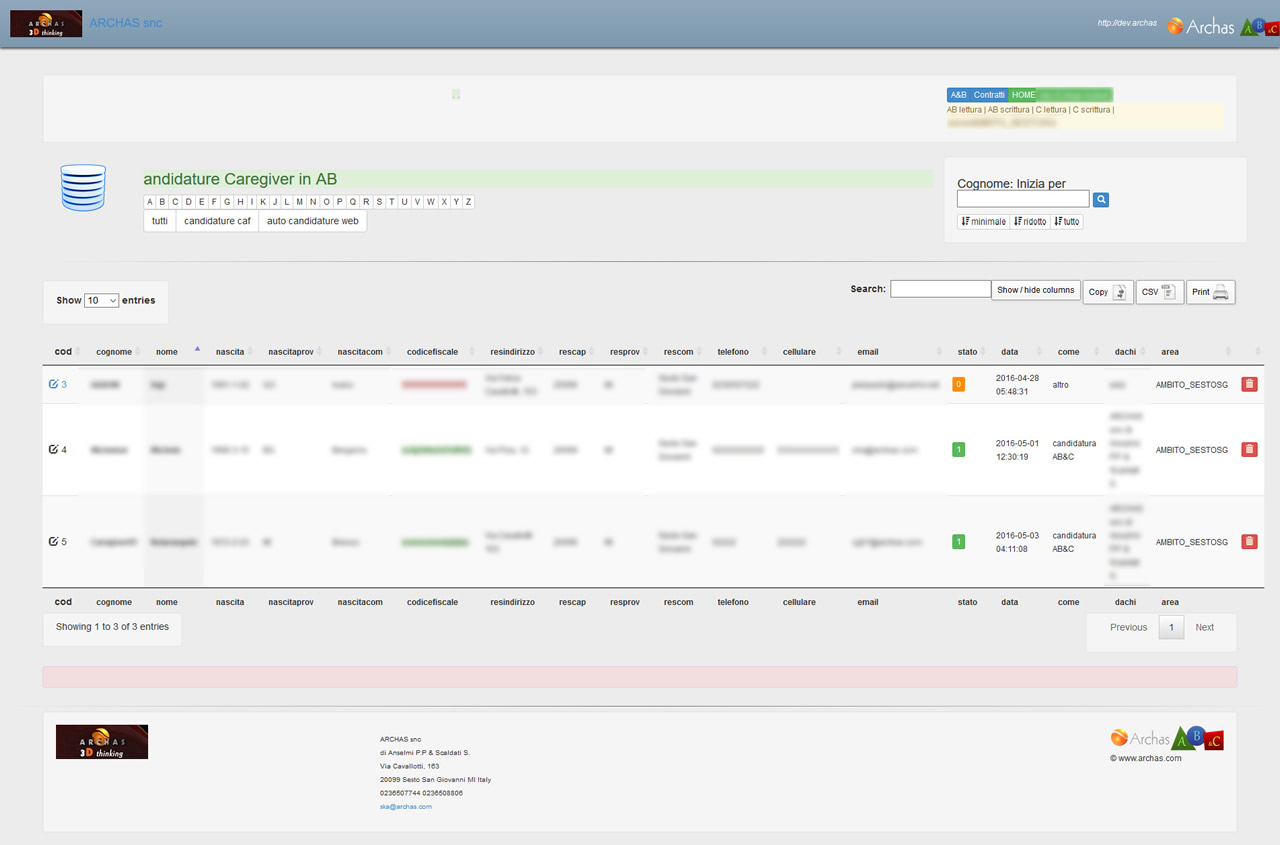 - il database, relativamente alla sezione dei candidati al lavoro di cura, deve essere tenuto vivo e condiviso;