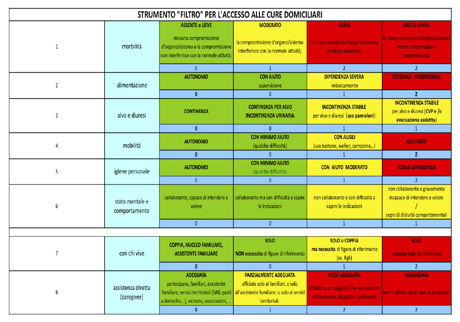 Nel caso in cui il punteggio sia inferiore a 2, la persona va indirizzata verso altra forma di servizi (socio-assistenziali/Servizio Sociale Comunale).